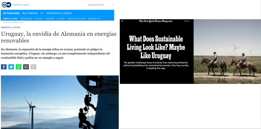 Esta semana DW y New York Times publicaron artículos en los que destacan el proceso uruguayo de transición energética.